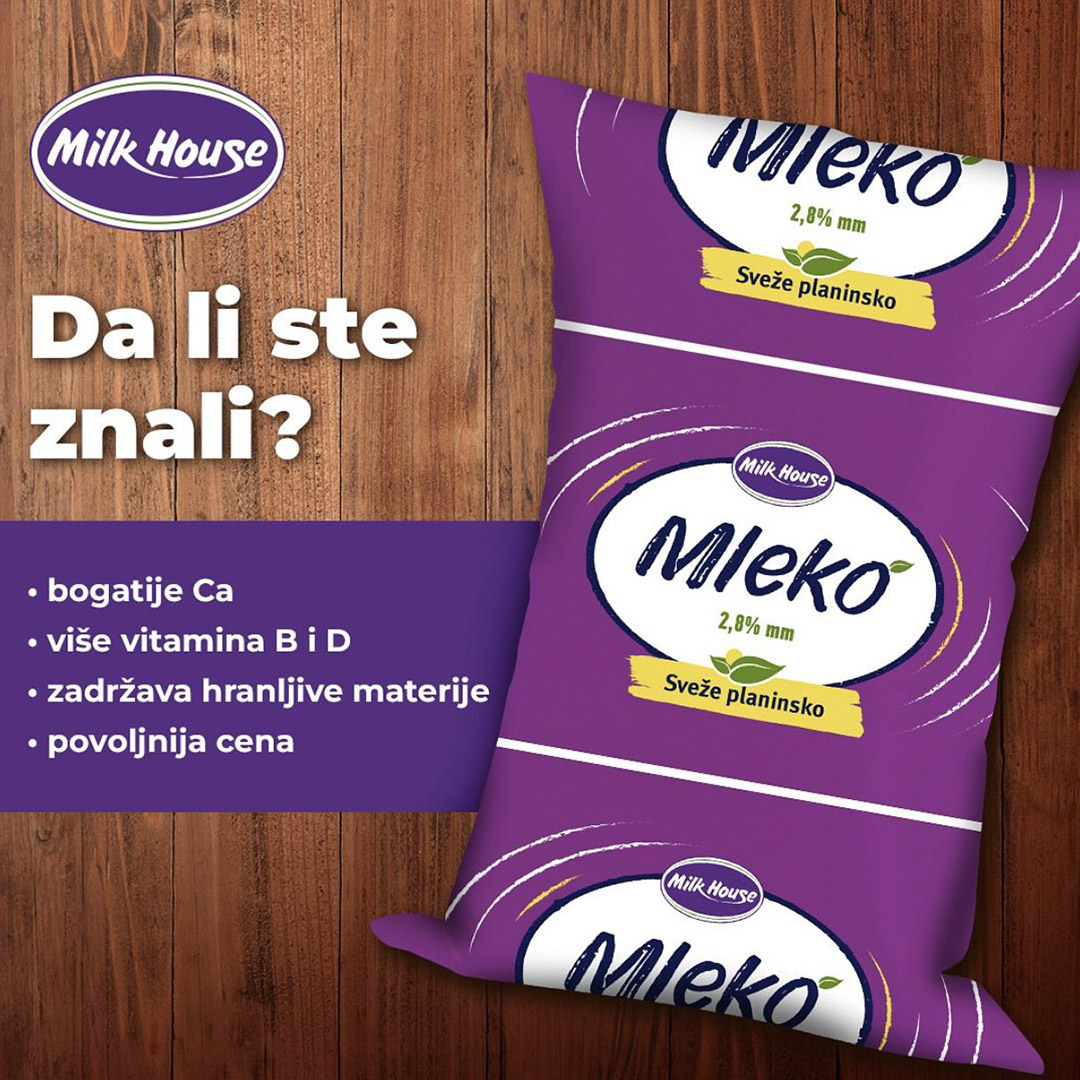 Mleko prilagođeno vašim potrebama – dugotrajno mleko sa produženim rokom trajanja, pasterizovano mleko koje zadržava svežinu i prirodan ukus, kao i varijante sa 2,8% i 3,2% mlečne masti, za one koji preferiraju puniji ili blaži ukus.